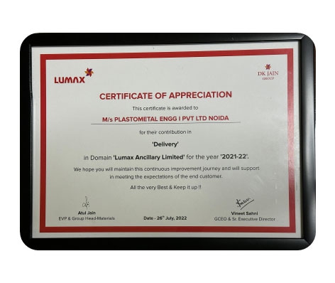 The "Delivery Excellence" award, conferred by Lumax Ancillary Limited for the year 2022, recognizes exemplary achievement in meeting delivery commitments and exceeding customer expectations. This accolade underscores our commitment to operational efficiency and customer satisfaction.