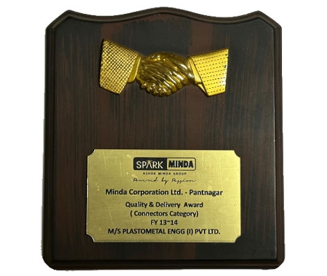 Plastometal Engg, a prominent player in the automotive sector , has been recognized for its exemplary performance in the connectors category by Spark Minda. The prestigious award, honoring Plastometal Engg's achievements during the years 2013-2014, highlights the company's unwavering commitment to delivering ‘SUPERIOR QUALITY AND TIMELY DELIVERY’ in the connectors segment.